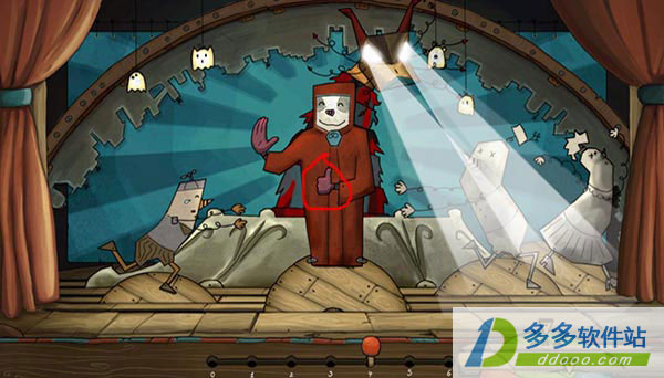 然后到舞台上可以得到:羽毛,点击那个中间红人的手臂这时所有的画退出,舞台上的暗门打开了。