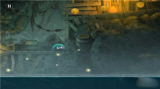 触屏的方式与上面按钮相对应,屏幕左侧手指左右滑动就是让里奥前进和后退;手指在画面右侧上下滑动,就是让里奥分别上浮膨胀身体和往下坠落。