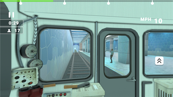 总体来说地铁模拟器8的玩法虽然简单,但也蛮有意思的,它将真实中驾驶地铁的那一套流程都制作到了游戏当中,玩家在游戏中将作为地铁司机来控制列车的一切,通过屏幕左侧的推杆可以控制地铁的速度,大家切不可一味的加速行驶,尤其在逼近站台的时候就要将推杆拉下,让列车停靠在站台边,并打开车门让乘客门上车。玩家的任务就是要接送到足够数量的乘客才能解锁下一场景,所以你可千万别只顾着飙车而忘记乘客哦。此外,游戏中还有一点十分坑爹的设定,那就是每当你完成一次出车后,你所使用的列车就必须进行一段时间的维修,维修时间为30分钟,在这期间玩家只能使用其它列车出行,但是这些列车只有初始那辆是免费的,