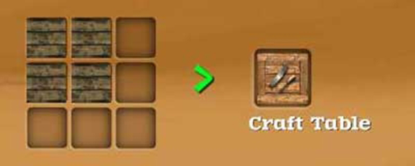 制作工作台的工序比较简单,只要用到木板这一种遍地都是的材料,摆放位置如图所示。合成公式无需解锁,在游戏开始时就可以直接制造
