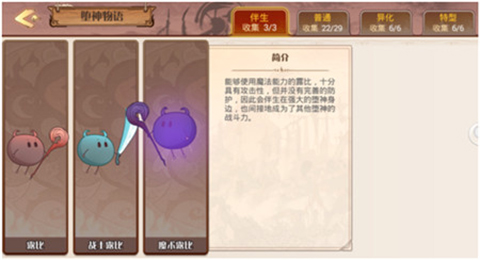 首先,和飨灵的M、R、SR、UR一样,堕神也分为很多等级,初始的【伴生】是最低等的堕神,很那想象这种萌萌的小团子居然是人类的死对头吧,不过,大部分时间【伴生】都是充当玩家屏幕中被一指弹飞的角色,导致很多玩家忽视了其也是具有一定程度的攻击力的,所以遇到【伴生】,还是早些“指上弹兵”练练指法比较好。