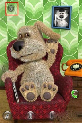 点击狗狗本右边的电话,电话就会想起来,狗狗本会拿起电话来听,这时候你可以跟它对话,狗狗本会很仔细的听你说话呢,还会重复你说的话哦,你想说什么它都可以听得到。