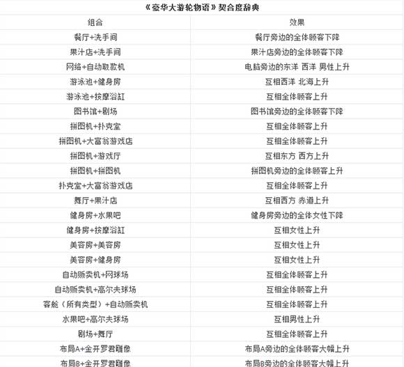 以上就是小编为大家整理的《豪华大游轮物语》中设施、店铺间契合度辞典以及提升店铺魅力的特殊位置,希望对各位玩家有所帮助。