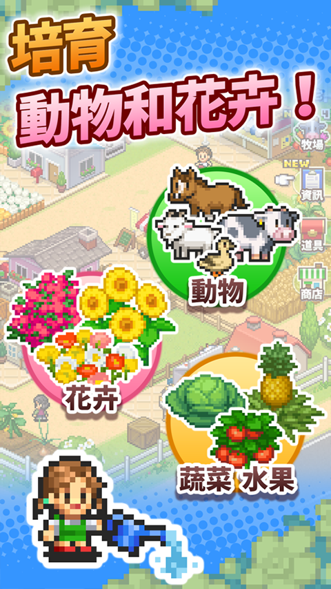 像素牧场物语ios版是苹果商场上一款融入了RPG元素的牧场模拟经营游戏,也是开罗游戏倾力研发打造的又一款此类型手机作品。在这款游戏中玩家将扮演一位牧场主,通过培育动物、蔬果、花卉等物品来赚取货币,最终将牧场与景区相结合来吸引顾客,打造一个多元化的牧场产业。和开罗的大多数作品一样,在像素牧场物语中玩家除了发展经营外,也需要考虑建筑的布局,让游戏更具趣味性。