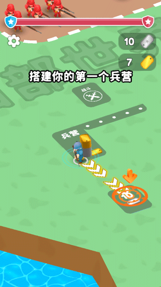 4 、小小指挥官是一个有趣的策略放置游戏,玩家在游戏中需要搭建自己的兵营用于士兵招募,提升自己的队伍容量上限。