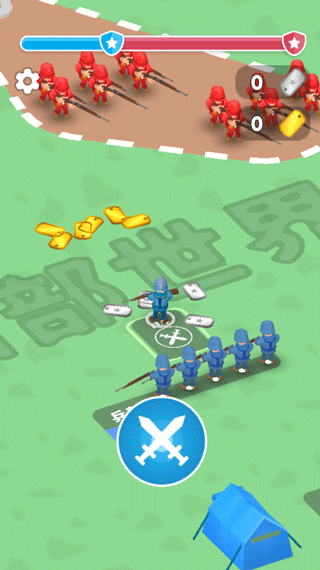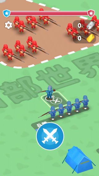 小小指挥官游戏的画风简单、指引明显,玩家在游戏里可以快速的上手游戏,更快的感受到游戏的乐趣,并且游戏玩法简单,玩家只需要在游戏里进行点击以及控制人物移动就可以推进游戏的进程,快来在游戏里排兵布阵,扩大你的兵员和装备吧。