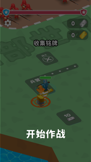小小指挥官苹果手机版是一款非常具有趣味性的休闲小游戏,在游戏里玩家将扮演一名想当将军的士兵,在游戏里收集铭牌、建造兵营、与敌人进行战斗,玩家可以通过战斗之后来收集铭牌来进行军营的升级,每升一级玩家就可以升到更高军衔的士兵,在游戏里可以实现你当将军的梦想。