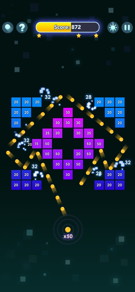 砖块消消消苹果版是猎豹游戏(Cheetah Games)针对苹果用户全新推出的一款魔性打砖块游戏,英文名称Bricks n Balls,也是该厂商继《滚动的天空》、《跳舞的线》、《弓箭手大作战》之后,又一休闲益智手游力作。该游戏在画面风格上,延续了简单、整洁清爽等元素,同时保留了逗趣的玩法以及与经典打砖块相结合,在这里玩家将控制弹球,依据物理规则来撞击消灭方块,闯过一个个关卡,感受全新好玩的打砖块体验。