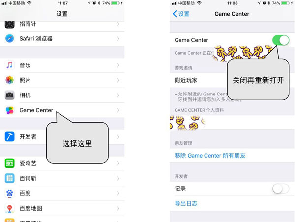 手机系统未升级的请注销你的Game Center账号再重新登录。