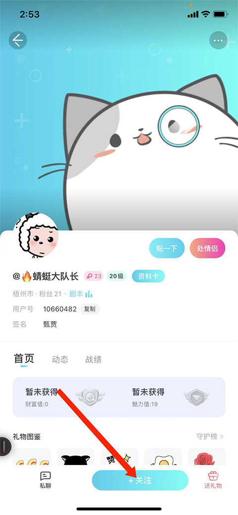 2、进入【用户信息】界面,可以看到关于他的一些相关信息,选择【关注】,双方相互关注后即可成为好友了。