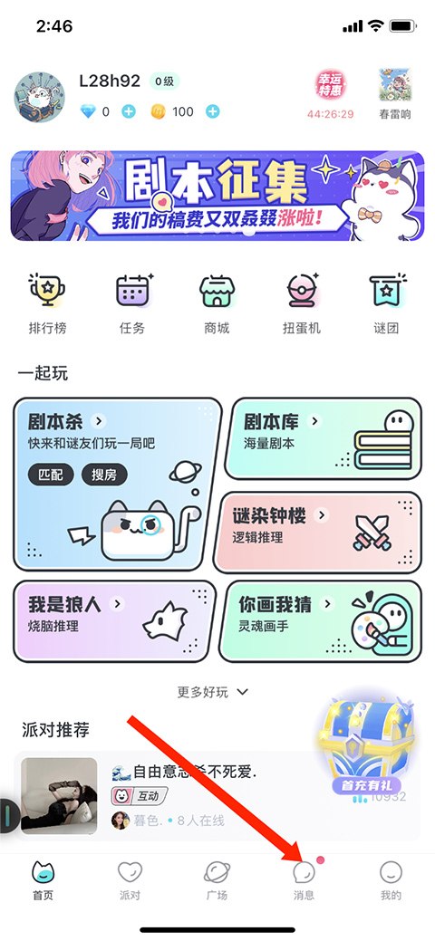 1、打开我是谜ios版,进入游戏主界面,选择下方【消息】选项,
