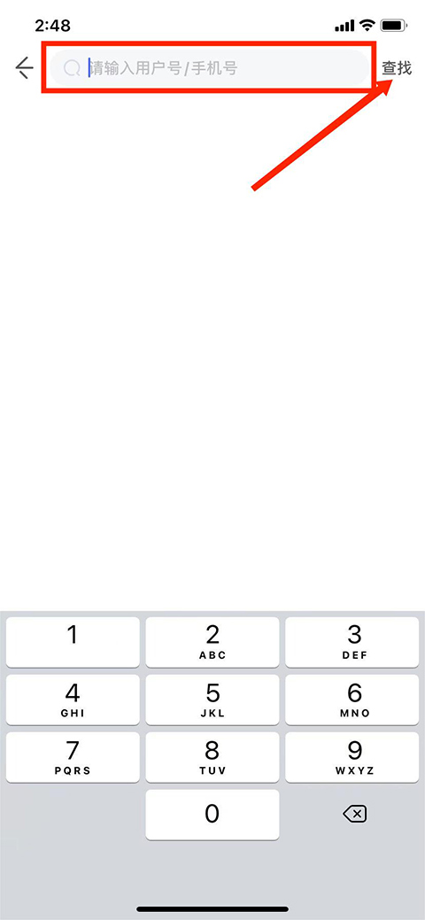 3、在【搜索框】输入好友的昵称或者手机号,选择【查找】即可加好友了。
