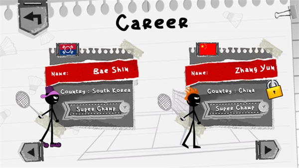 除此之外,火柴人打羽毛球游戏中有着多种不同的游戏模式,包括单人模式、双人对战模式和锦标赛模式等,使得游戏更加多样化有趣。同时提供了多个难度级别,从简单到困难,挑战玩家的反应速度和技巧,使得游戏更具挑战性和长久的乐趣。对此有兴趣的小伙伴可以来下载体验。