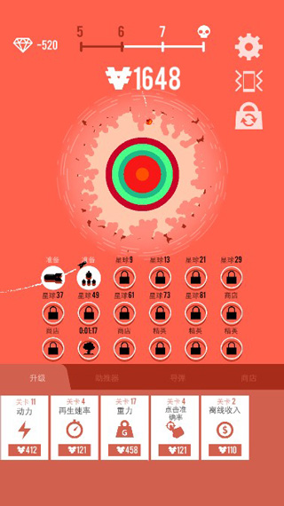 4、升级轰炸时的动力、再生速率、重力、点击准确率和离线收入;