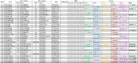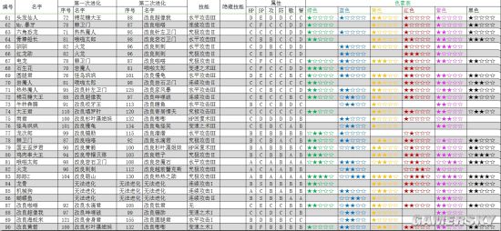 所以S的需求你要看初始需求 M要看什么宠进化1次才能变成目标宠 L需要看进化2次 具体可以看看我从贴吧搜来的表 说明一下名字和编号可能不对尽量结合前后猜一下(最新的只有wiki上的日文版 中文就只有老版了)