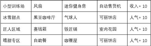 特色区域是游戏中非常重要的特色之一,好的设施搭配不仅可以提高游戏中的美观程度,还可以提高各个店铺的收益和人气。