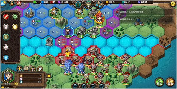 那么玩法就很简单了,以小飞侠为主力一个一个削弱敌人或者把它们打到一起,索菲娅双手雷轮流清理,点出浅水行军和攻城战术后从河道一路南下直接把敌人全部击溃。