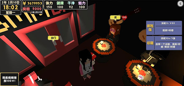 想要交女朋友,我们需要提升跟妹子的好感度,然后升级房子,重新租一间大的公寓才能带女朋友回家。