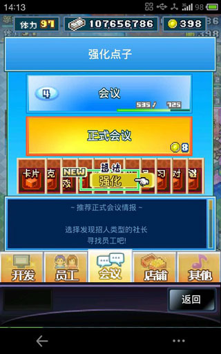 如果点子数量足够的话那就多去制作,大家可以从里面获得很不错的点子哦,这都有助于后期游戏的研发。如果点数不够的话,可与进行开发或是使用道具,会议点数就会增加哦。