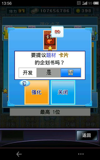一开始玩家获得的都是1星的员工,开发几个游戏之后会获得2星的员工,员工星级越高,能力越强,不过工作成本也就越大。初期不建议大家去升星,可以合理的对2星或是3星员工进行升级,道具还是很足够的。