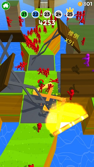 - 丰富多变的场景带来更有趣的体验,利用好地形来推掉前方的小人,争取胜利!