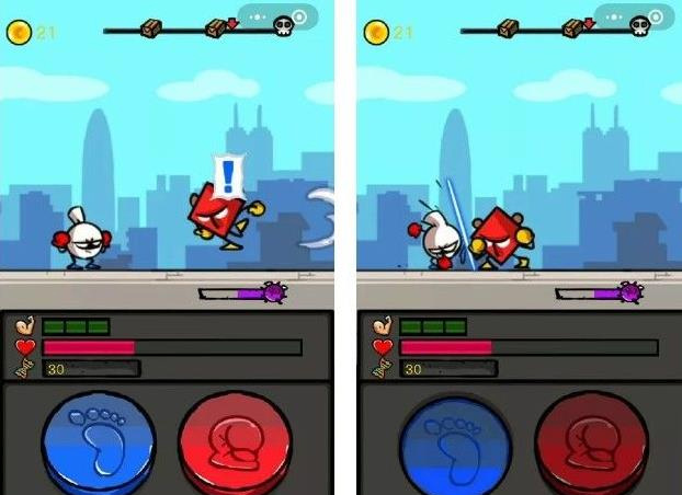 2、乘坐火箭到达战场开始战斗,热血细胞游戏里有两个红蓝两个按钮。红色按钮可以挥拳攻击敌人,蓝色按钮使出飞毛腿踢飞病菌