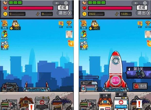 1、被敌人袭击过的家园破烂不堪,我们需要先修复公寓,去战斗消灭敌人再慢慢修复餐厅、加工厂等