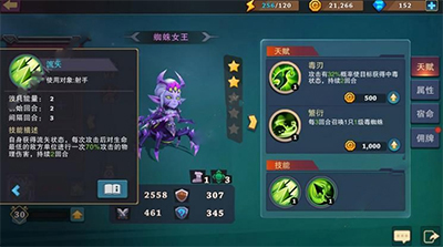 蜘蛛射手同样是射手阵容必带的佣兵,作为主线任务赠送的佣兵,她简直IMBA到不像话:毒刃在使目标中毒后在两回合中造成10%生命上限的伤害,