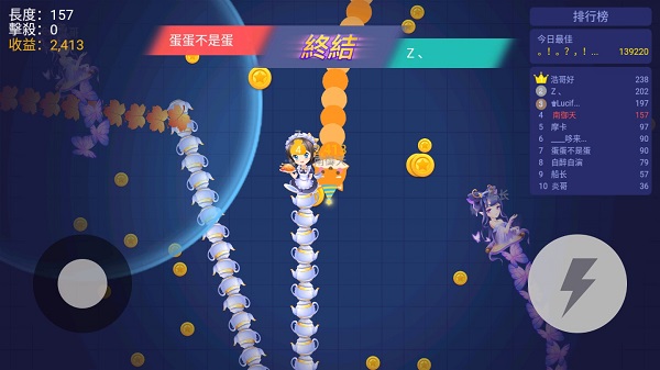 控制摇杆走位你的小蛇,吃掉地图上金币,就会变长。