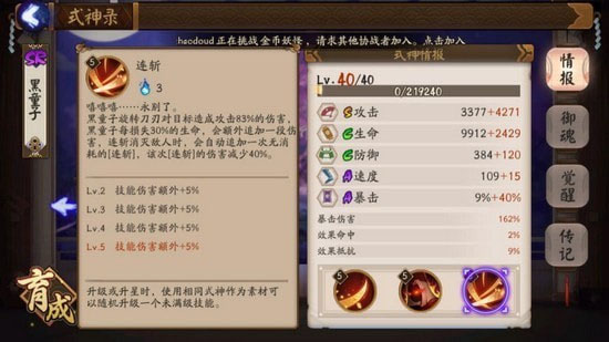 接下来的式神童男也是重中之重,复活全部队友是亮点。然鹅,我在斗技和结界突破的阵容中,却很少看到他的身影。也许是大家都不是反击阵容的原因吧。