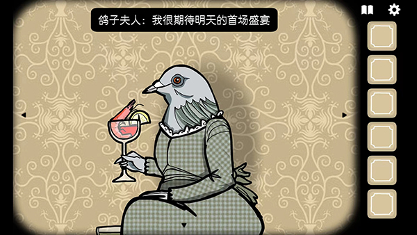 4、点击【箭头】图标切换界面,将鸡尾酒分别发放给猪先生、鸡女生、鹿先生、兔先生和鸽女士,不同的人都会给出不同的回复,
