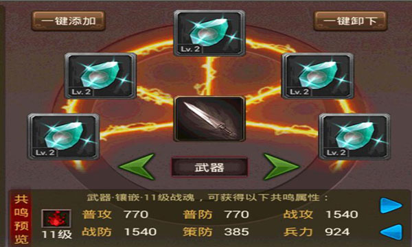 1、装备共鸣:新版增加了装备共鸣,装备共鸣使用的魂晶,并不是大家熟悉的魂石,而是新版本的资源,通过每日挑战获得的魂晶。魂晶的获取后面会有介绍,装备共鸣中需要集成九套。魂晶有点复杂,如果说的不好,还请见谅。初始获取到魂晶,通过五个合成一个有属性或者无属性魂晶,魂晶合成后分为无属性,水火土,日月星。无属性的是最次的,最好的是日月星的。魂晶的分辨是通过魂晶中间的图案来分辨魂晶的属性,魂晶混搭只加防御和带兵,五个同属性的加成如下图: