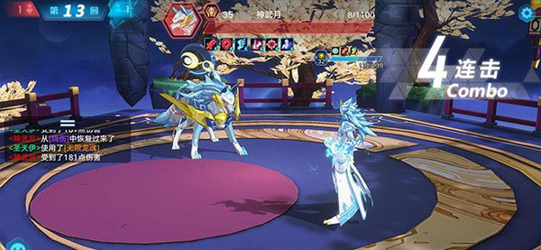 我们首先让花冠公主和神武月上场,花冠公主属于主动奉献自己去削弱兔子的属性,这个比较看脸吧,我们要尽最大可能的削弱兔子。此时的神武月就在边上保持猥琐发育,血量不足的时候可以使用3技能回血,建议可以先使用2次上古血脉,如果很不幸的刚开始就被打死了,可以选择逃跑然后重开战斗。