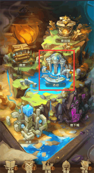 首先我们点击主页冒险按钮进入另一个界面,再界面中我们可以看到‘活动’的图标,点击进入。