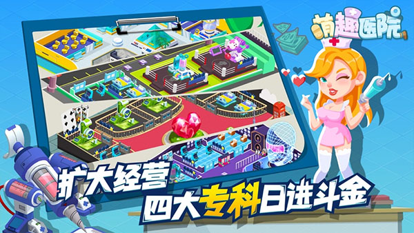 萌趣医院苹果版是由深圳市舜水网络科技有限公司研发推出的一款休闲趣味性模拟经营手游,该游戏以医院为主题背景,游戏画风清新,人物刻绘Q版可爱,游戏主要讲述的是你需要在市中心开设了一家医院,并招募一群技术精湛的医护人员,使用新颖奇特的治疗手法和奇葩搞笑的医疗道具为小镇上的人们赶走病毒克星,该病毒有可能是失恋症、脚气症,也可能是巨婴症,总之各种各样的荒诞病情都在这里发生。同时在萌趣医院游戏中玩家还需要应对各式各样的病人,有老人、小孩、父母、残障人士等,除此之外,为了扩大自己的医院,你还将继续培养医护人员,使他们的医术更加精湛,而且在游戏中,你还可以扩大自己的好友圈,邀请还有并与其一起亲密互助共同经营,将自己的医院一步一步发展成强大,成为丰富多变的萌趣医院。