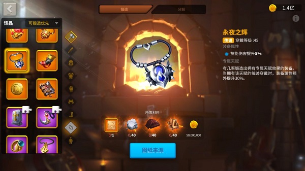 金色饰品只有永夜之辉可以从野蛮人要塞获得碎片,其他都是KVK获得,但是由于掉率实在太低,而且需要材料太高,实在是不敢恭维,对于大多数玩家来说选择蓝色或者紫色配饰就可以了。