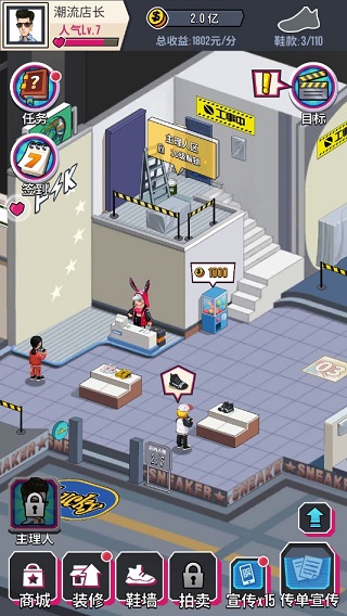 如果有顾客上门,那么你们的服务一定要是非常的周到,不要有怠慢,在游戏里面经营,只有赚取才是王道,大家千万不要做一些亏本的生意,提升你的等级非常重要,因为等级越高你才可以解锁更多的潮牌样品。提升店铺的等级,扩张店面才能让更多的客人前来选购,赚更多的钱,每一双鞋都是非常酷的,还有超多潮流搭配服装可以穿戴,让自己更潮。