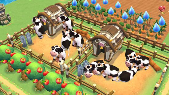 初期你的将会获得一群勤奋踏实又注重自我清洁的好朋友——奶牛,它们将为你产下新鲜纯白有点甘甜的牛奶,每20分钟可收割一次。这并非普通的牛奶,在这依山傍水的清新小镇上,纯氧度爆表的空气自由呼吸,新鲜的谷物饲料随时供给,为你的奶牛伙伴健康形成天然保障。偶尔兴起的它们也会俏皮地围坐一圈露出萌贱的表情,那是一种与众不同的魅力!