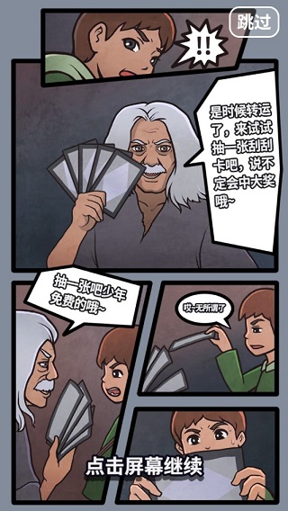 开局的我们(也就是男主)欠下了天资巨款,正当不知道怎么还的时候有个老人出来了,说可以让我们选择一张卡牌,无论怎么选,都是经营网吧。这些虽然说没有什么伏笔,但大体明了有趣,而且采用的是开局这个故事的漫画形式,不仅有趣,还让玩家感觉得到实足的幽默风趣。然后接下来你就要开始经营网吧了。