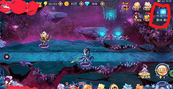 进入游戏在主页,点击右上角进入游戏副本窗口,如下图所示: