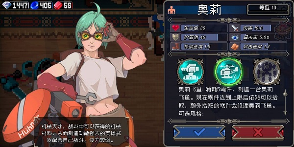 4)关于技能抉择的说明。经过实测,发现飞机风格3的效果生存更好,输出也并没有低多少,所以抛弃风格1。机械妹妹这个终极技能略显鸡肋,不带风格1则耗费零件多,带了风格1则刷图的技能输出却跟不上。并且这机器人有时间限制,被打中还会加速减少时间,并且在使用机器人的时候不会掉落零件?!所以这个机器人技能应该需要加强,目前这技能太废了。