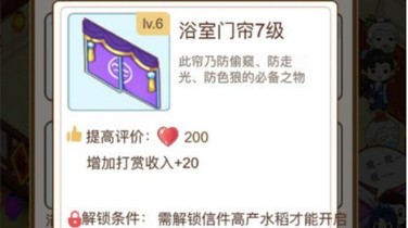 这边小编跟小伙伴们说几个游戏中的小技巧,在游戏中我们尽可能的将祭坛的等级升到最高级,这样获得其他的水果的可能性也就越高,对于那些比较难获得物品我们先存着,不要着急使用他们,另外解锁了高产水稻信件我们可以解锁浴室门帘七级。
