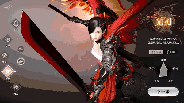 光刃是近战物理输出,持双刀大剑。迅捷的招式、强大的爆发、飘逸的走位,都很适合挑战自我的操作党。