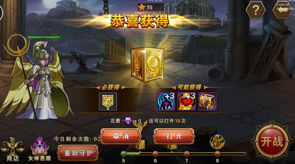 玩家等级达到30级时将开启“守护雅典娜”玩法,通过该玩法的层层试炼后将获得大量的金币及道具奖励,为斗士的成长加油助力!