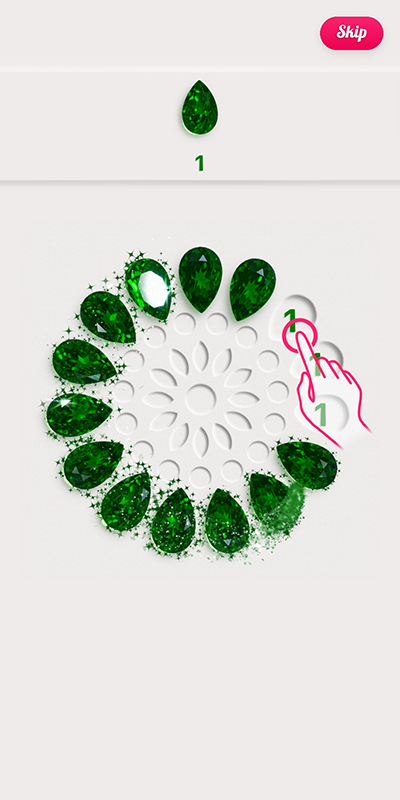 4、将真实世界中手工拣选的各类宝石与对应的数字相匹配,便能亲手打造出成百上千幅瑰丽的艺术作品。