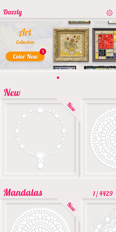 1、打开Dazzly绚石工坊苹果版,进入游戏后选择一个喜欢的图形进行填色;