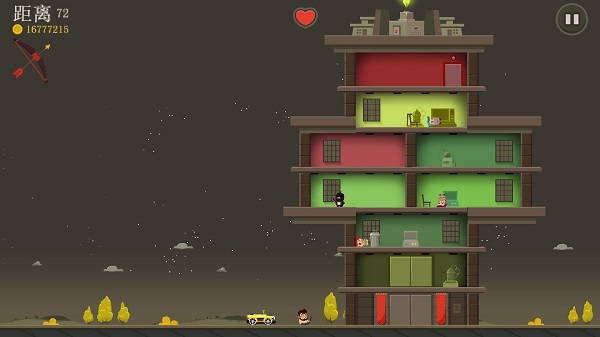 游戏让大家体验到了只需一手操控也能感受猛烈撞击的快感,刚开始贴心的新手教程也足矣让玩家一目了然,只需上下滑动屏幕,便可操控这位大胡子上下跳跃来回穿梭撞击在各个楼层之间,并在躲避敌人的攻击同时攻击敌方解救人类。