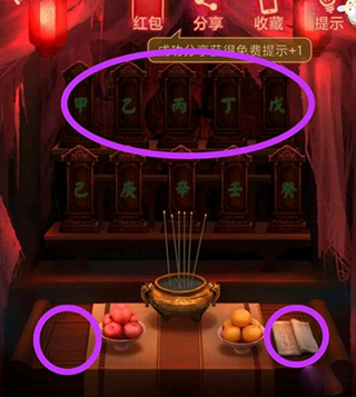 1、开局来到右边小祠堂,观看桌子上的线索,了解摆放牌位顺序开启机关。