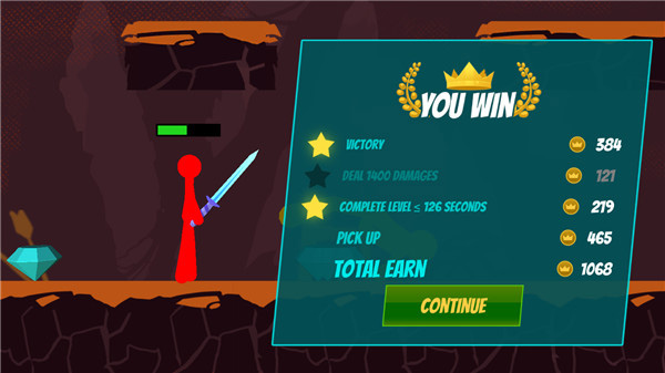 4、控制火柴人进入游戏关卡,快速避开游戏陷阱的同时,迅速消灭最后一个游戏敌人关卡。
