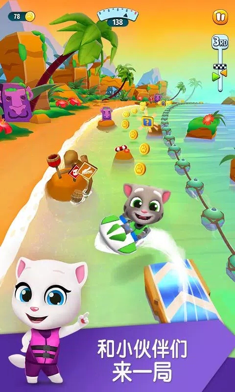 汤姆猫摩托艇2苹果手机版是一款休闲竞速手游,深受广大玩家的喜爱,这里不仅有精彩刺激的水上摩托艇追逐,还有海湾别墅的定制装修玩法,在此玩家所扮演的“会说话的汤姆猫”将与其他家族成员进行水上摩托艇比赛,通过比赛获取的奖励可用于购买建筑材料,打造专属“小屋”,同时你也可以升级你的摩托艇,提升加速性能,获取最高时速。除此之外,游戏中还有海量关卡的精心设计,五款主题的竞速场景,以及多种款式的摩托艇系列皆可满足玩家们的收集欲,并且还有新鲜的竞速对战,给你休闲娱乐上的满足感。即可定制你的专属喷气摩托艇,前往五个世界与家族内的其他成员展开激烈的追逐竞速,挑战过程中,切记躲避沿途中的障碍哦~